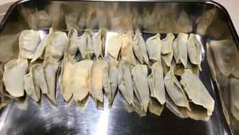 出来上がったギョウザは丁寧にバットに並んでいました.
