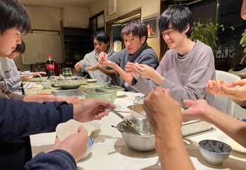 奥に陣取るのは3年生.すっかり学生生活に慣れて充実している様子.