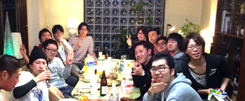 中央奥はオーナーK.カギ忘れの学生さんのレスキュー隊長としても大活躍.しかもお料理名人.